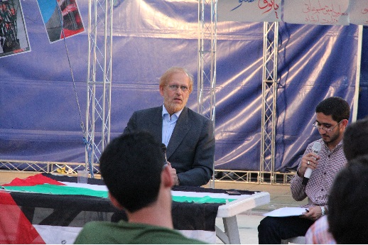 شب گذشته که اخرین روز برپایی خیمه بود از ساعت 7 علی مطهری نماینده محترم مجلس شورای اسلامی ضمن حضور در خیمه و سرپرستی از ایتام غزه به ایراد سخنرانی و پاسخ گویی به سوالات حضار پرداخت.وی با اشاره به اینکه اسراییل قانع به فلسطین نیست بلکه از نیل تا فرات را میخواهند و بلکه فراتر از آن قسمتی از ایران را چشم دوختهاند حمایت از فلسطی ا حمایت از منافع ملی دانست او با بیان اینکه راه حل مسئله فلسطین وحدت همه کشورهای اسلامی است. وی اضافه کرد ما باید در راه وحدت اسلامی بکوشیم و با عوامل تفرقهانگیز مقابله کنیم. او ایده تشکیل یک ارتش اسلامی را نیز بیان کرد. او با اشاره به اینکه کشور های اروپایی و امریکا به طور علنی از اسرائیل حمایت میکنند گفت ما نیز باید به طور علنی از آنها حمایت کنیم وحتی نیرو مسلح برای کمک به آنان بفرستیم.