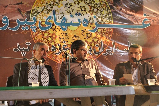 شب گذشته که اخرین روز برپایی خیمه بود از ساعت 7 علی مطهری نماینده محترم مجلس شورای اسلامی ضمن حضور در خیمه و سرپرستی از ایتام غزه به ایراد سخنرانی و پاسخ گویی به سوالات حضار پرداخت.وی با اشاره به اینکه اسراییل قانع به فلسطین نیست بلکه از نیل تا فرات را میخواهند و بلکه فراتر از آن قسمتی از ایران را چشم دوختهاند حمایت از فلسطی ا حمایت از منافع ملی دانست او با بیان اینکه راه حل مسئله فلسطین وحدت همه کشورهای اسلامی است. وی اضافه کرد ما باید در راه وحدت اسلامی بکوشیم و با عوامل تفرقهانگیز مقابله کنیم. او ایده تشکیل یک ارتش اسلامی را نیز بیان کرد. او با اشاره به اینکه کشور های اروپایی و امریکا به طور علنی از اسرائیل حمایت میکنند گفت ما نیز باید به طور علنی از آنها حمایت کنیم وحتی نیرو مسلح برای کمک به آنان بفرستیم.